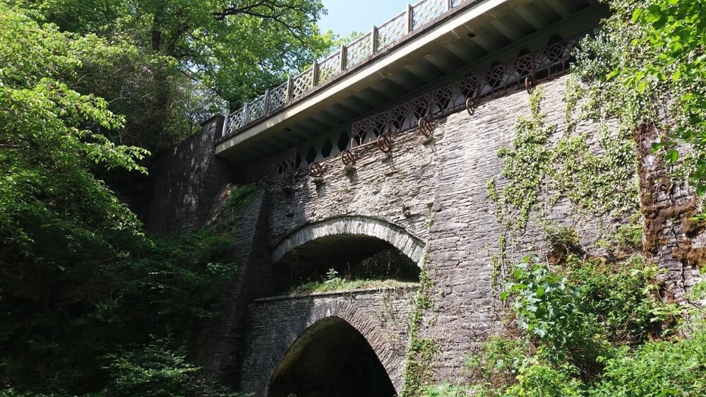 16. "Devil's" bridge in Wales. A twentieth century bridge built on an eighteenth century bridge built on a twelfth century bridge
