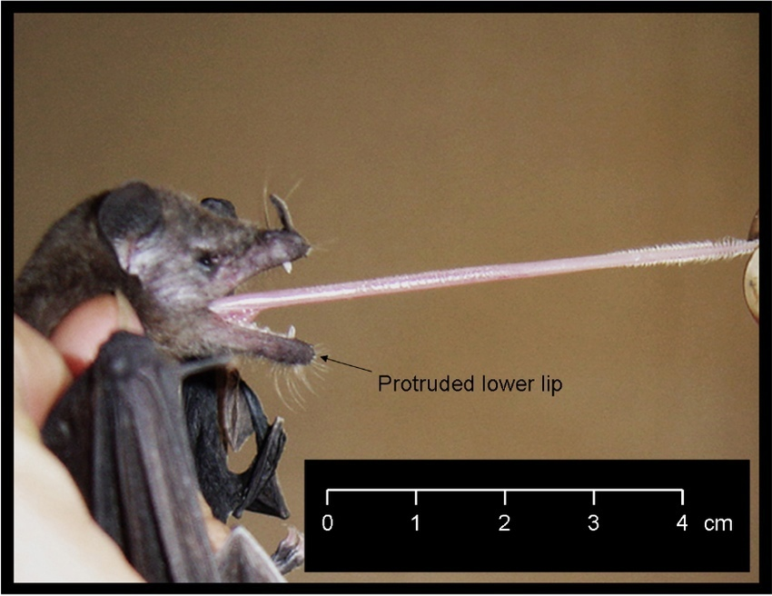 A disappointing second place goes to the tube-lipped nectar bat (Anoura fistulata). It's a shame because it has the longest tongue among mammals - 150% of the length of the entire mouse. That is, if the dimensions of the bat are 5-6 cm, then the tongue accounts for up to 8.5 cm.