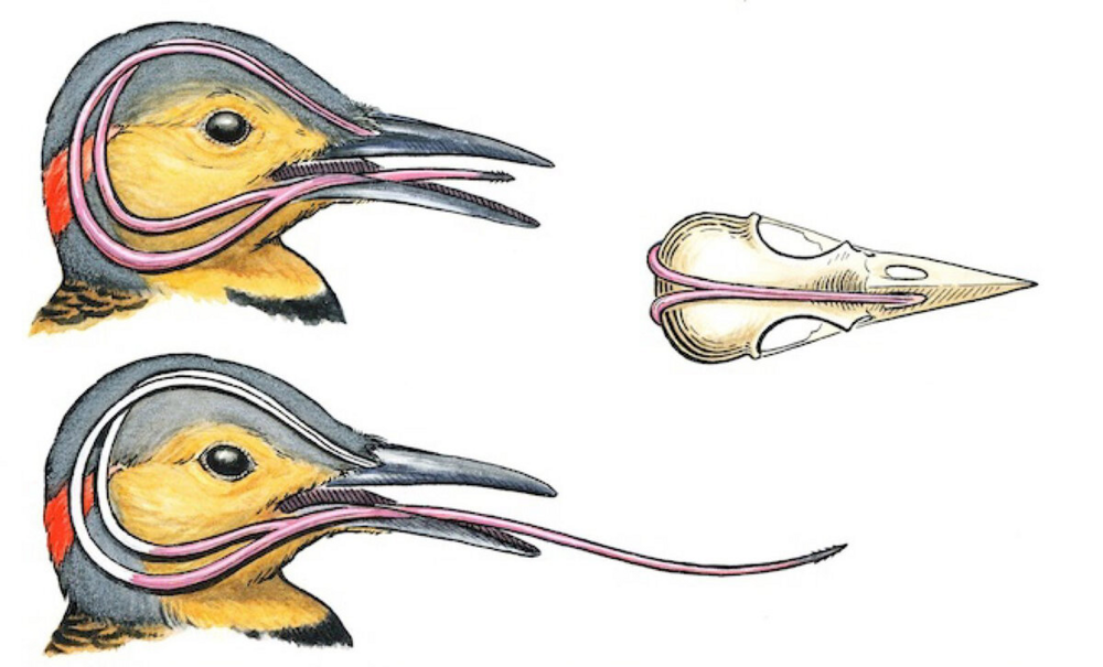 But how does such a long tongue fit into such a small beak? It wraps around the skull! This is not an allegory, but a statement of fact: the root of the tongue is located in the nostril, and the organ itself wraps around the head and exits through the mouth.