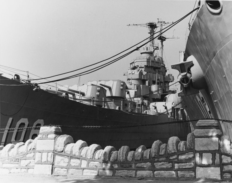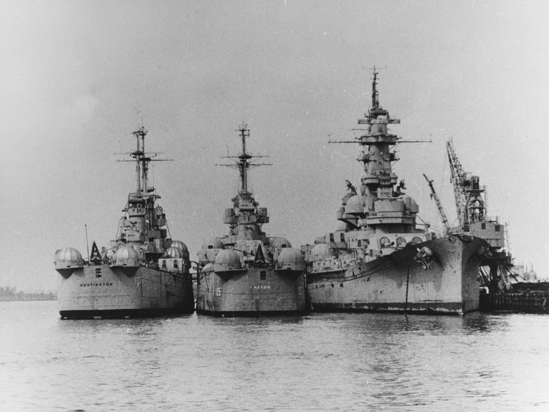 Huntington in reserve (far left). Next to it in the center is the cruiser USS Dayton (CL-105), on the right is the battleship USS South Dakota (BB-57). August 24, 1961