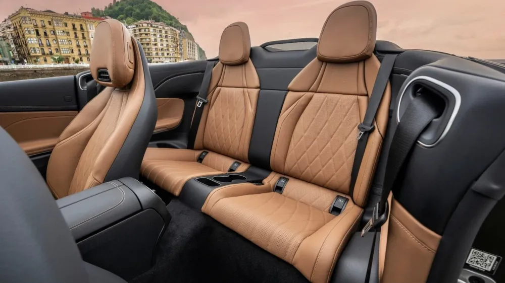 Mercedes-Benz CLE is built on the basis of the previous generation C-Class. At the same time, the dimensions have increased noticeably and reached 4850x1861x1424 millimeters with a wheelbase of 2865 millimeters. The trunk holds 385 liters with the roof up and 295 liters with the roof down.