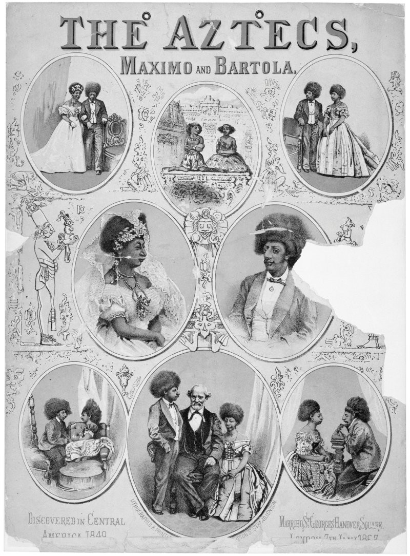 In 1853, Morris took Maximo and Bartola to England. There they were exhibited before the Ethnological Society and summoned to Buckingham Palace. During a public exhibition in London, they attracted the attention of three thousand people in just two days.