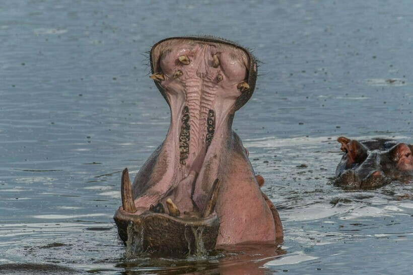 In fact, the crocodile understands that this is the most dangerous animal in Africa. By the way, why is the hippopotamus considered the most dangerous African resident? The crocodile simply does not risk attacking, because, most likely, the attack will turn out to be a complete failure. Once you look at the hippopotamus’s fangs, its thick skin and huge mouth, everything falls into place. Also, hippos usually live in packs and protect each other, so the crocodile has virtually no chance of winning.