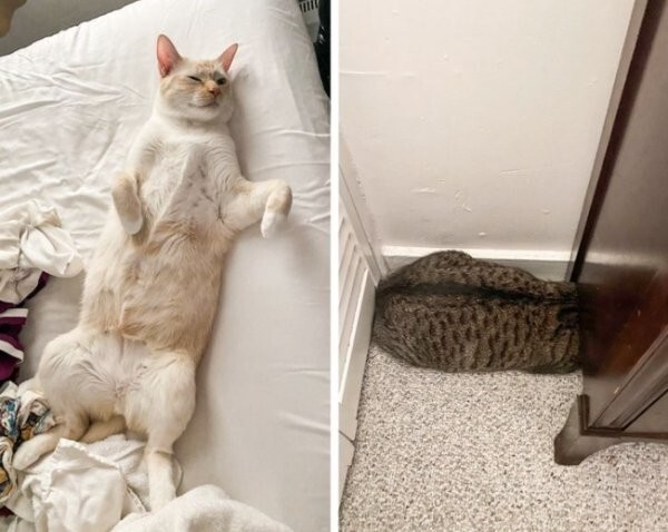 11. Some cats like to sleep from below, while others always lean on the second one from above.