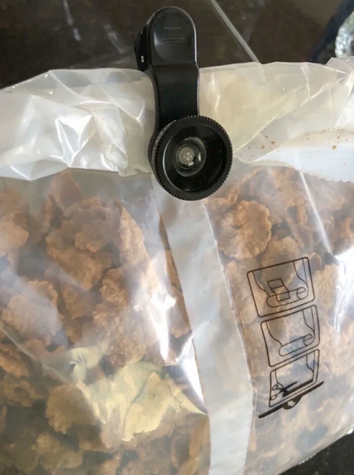 13. "I've been looking for my fisheye lens for weeks. Mom used it as a bag clip."