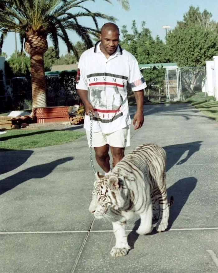 16. Boxer Mike Tyson walks his pet,