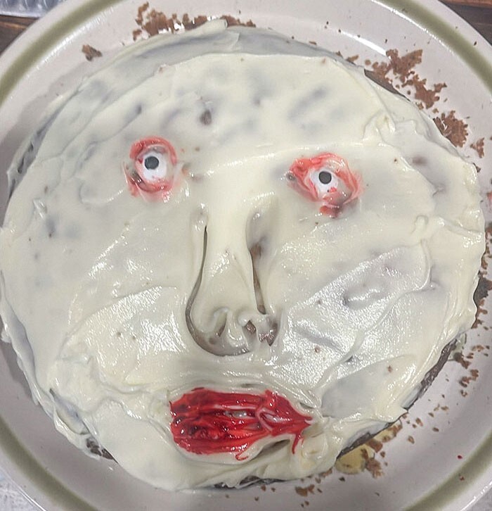 1. “Every time my wife or I look at this cake I made, we start crying with laughter.”