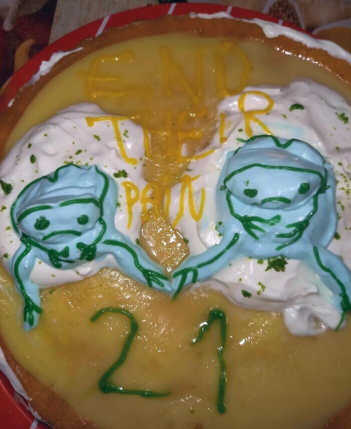20. “I tried to make a frog cake for my boyfriend, I think he’ll leave me.”