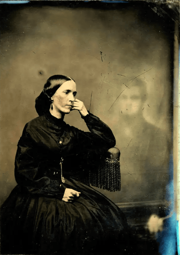 Mary Todd Lincoln with the Ghost of Abraham Lincoln, circa 1869