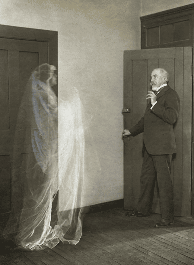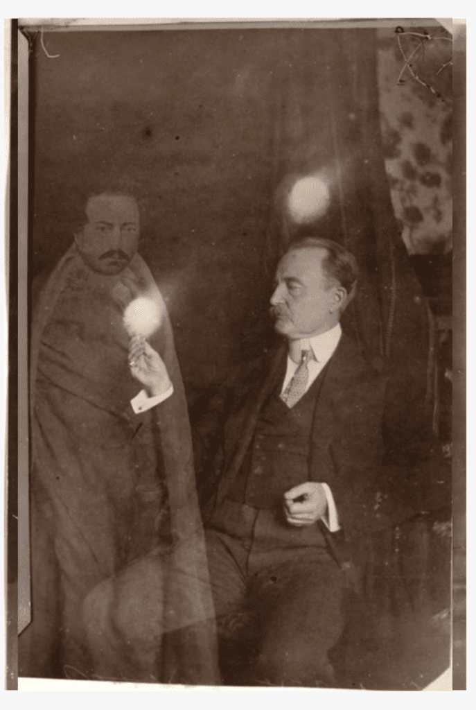 Photo of Sir Arthur Conan Doyle with a ghost, 1922