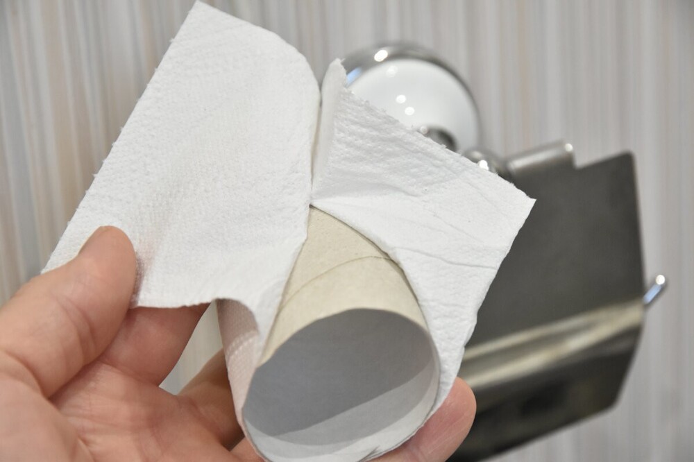 Over time, the wooden sleeve was replaced with a hollow cardboard one, but the method of fixing the paper on the sleeve remained unchanged: the last two or three turns of toilet paper were tightly glued to the sleeve with glue.