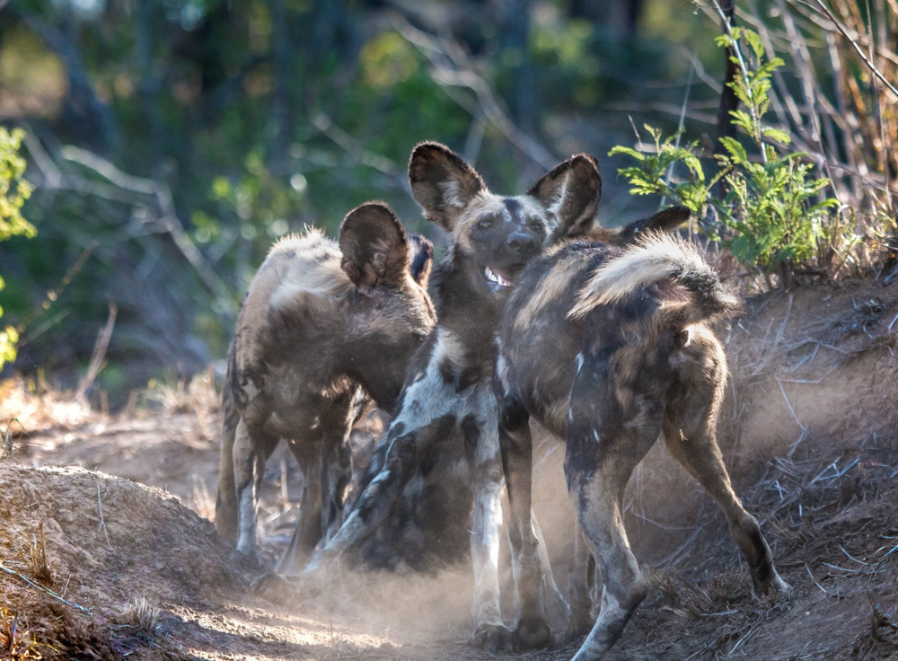 The pack's morning rituals begin at dawn. Wild dogs are diurnal animals, so their peak activity occurs during beautiful sunny hours. After waking up, all the dogs in the group actively greet each other, rub their muzzles against their brothers, whine, squeak and in every possible way express to their fellow tribesmen how glad they are to see them. How often do you hug your loved ones in the morning?
