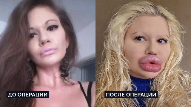 So, if you were looking for lips that cannot be kissed, then here they are. More precisely, before us is Andrea Ivanova, who calls herself the owner of the “biggest lips in the world.” In order to receive such a title, she underwent 6 (!) plastic surgeries in one day. The photo shows the “before” operation. And inside - “after”.