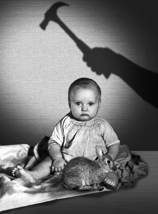 Then Watson placed an iron plate behind Albert's back, picked up a hammer and stood there. Rosalie laid out the usual set in front of him,but as soon as the baby took the rat in his hands, Watson hit the plate with a hammer. The sound scared the child into hysterics, which they could not calm down for an hour. And then it all happened again. Once again. And further. All this continued until, at the sight of a white rat, Albert fell into terrible hysterics.