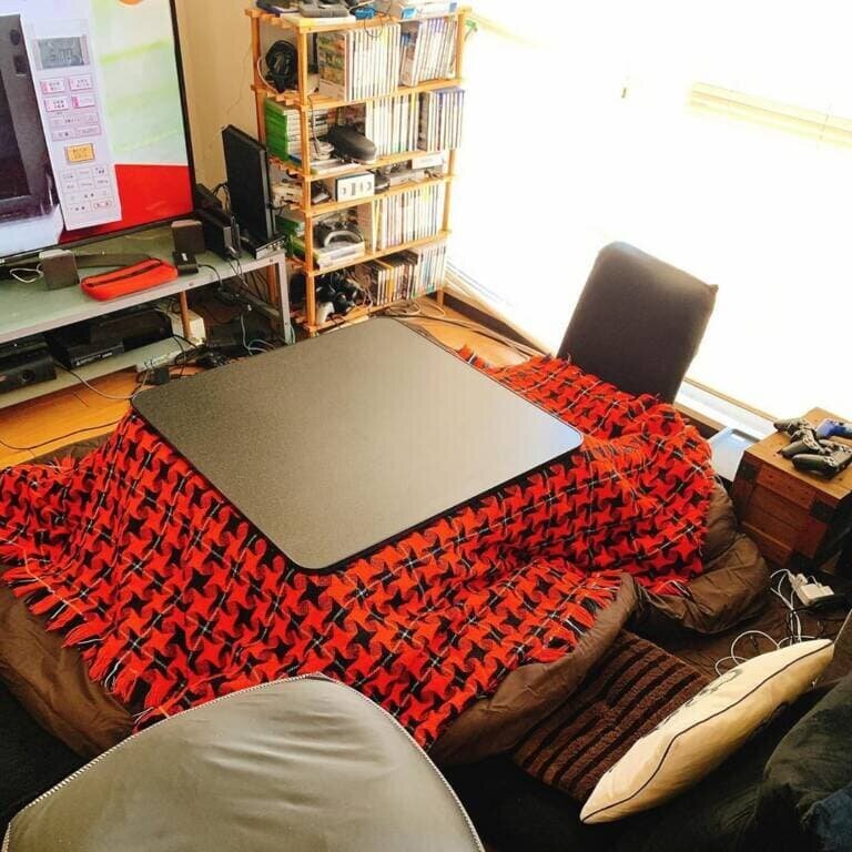 Kotatsu table. This blanket heated table is very popular in Japan.