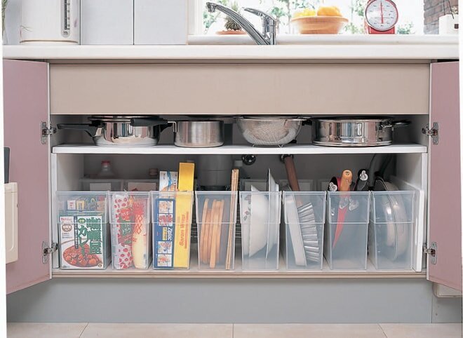 Many Japanese kitchens have additional storage space for food and various kitchen utensils.