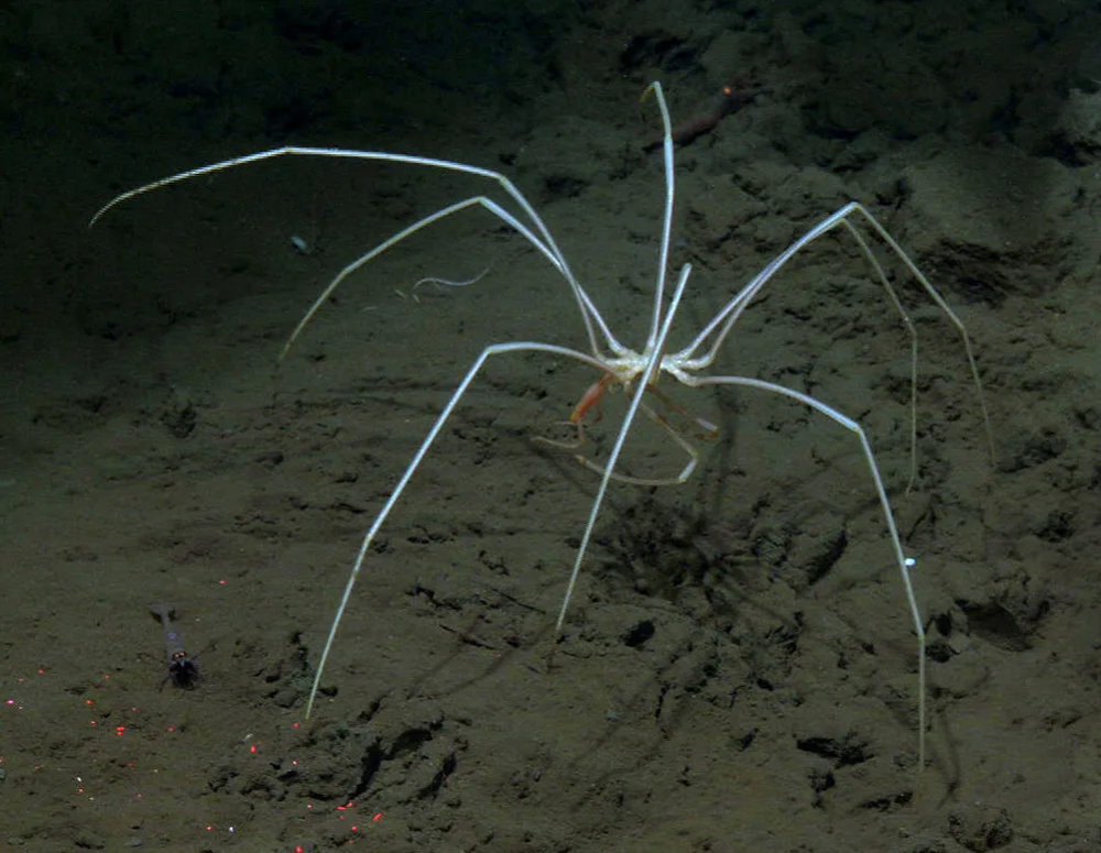 Sea spiders are an order of 1,300 species found in all parts of the world's oceans. Most of them have never actually seen sunlight, because they live at depths of 1000 to 7000 meters. 200 years ago, biologists decided that they had discovered spiders that had gone to live in the sea.