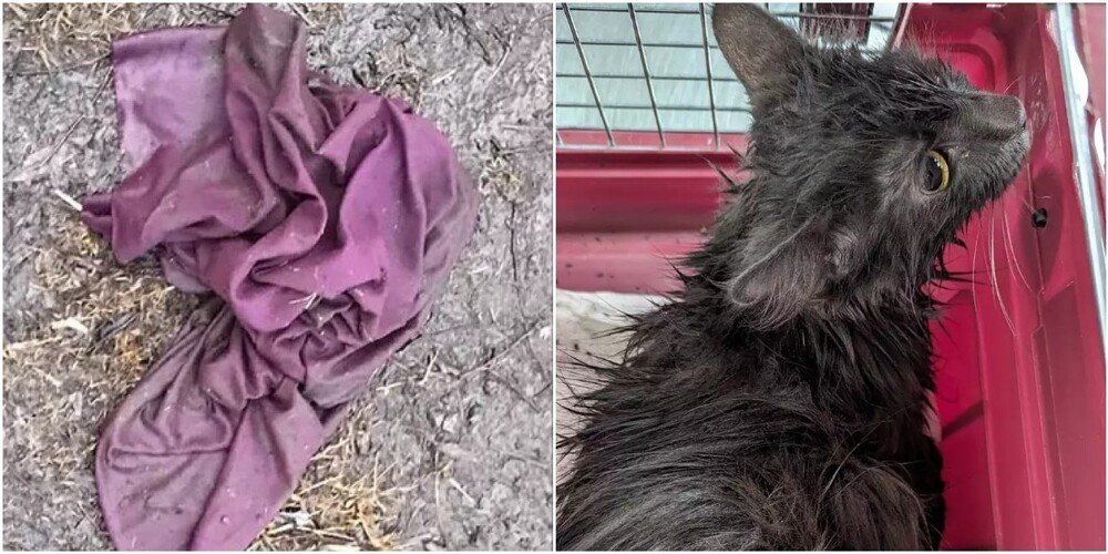 Passers-by noticed a pink rag on the side of the road, in which someone was clearly moving. It turned out to be an unwanted cat that was cruelly thrown out in the pouring rain. The poor thing was all wet - but kind people did not leave her in trouble.