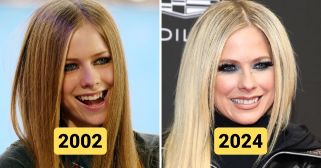 Canadian singer performing on MTV in 2002 and at an event on February 3, 2024.