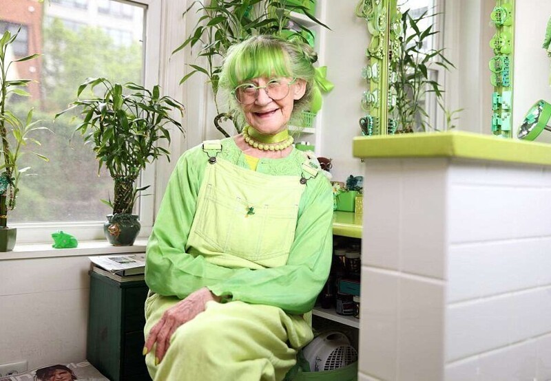 83-year-old Elizabeth Sweetheart from New York loves the color green and everything connected with it. She is known as the "Green Lady of Brooklyn" and her entire house, hair, clothes and everything around her is green.