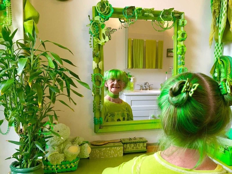 "I love bright colors. I've worn many colors throughout my life, but green brings me the most happiness. It's easy to live with," says the woman.