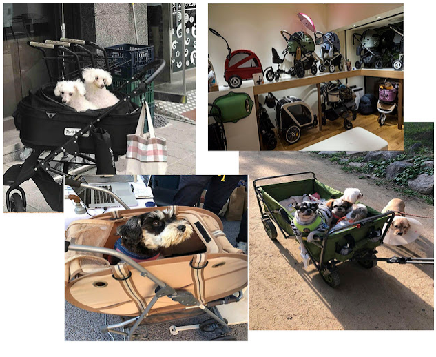 Dog strollers are wildly popular in Korea; you can go into supermarkets with them