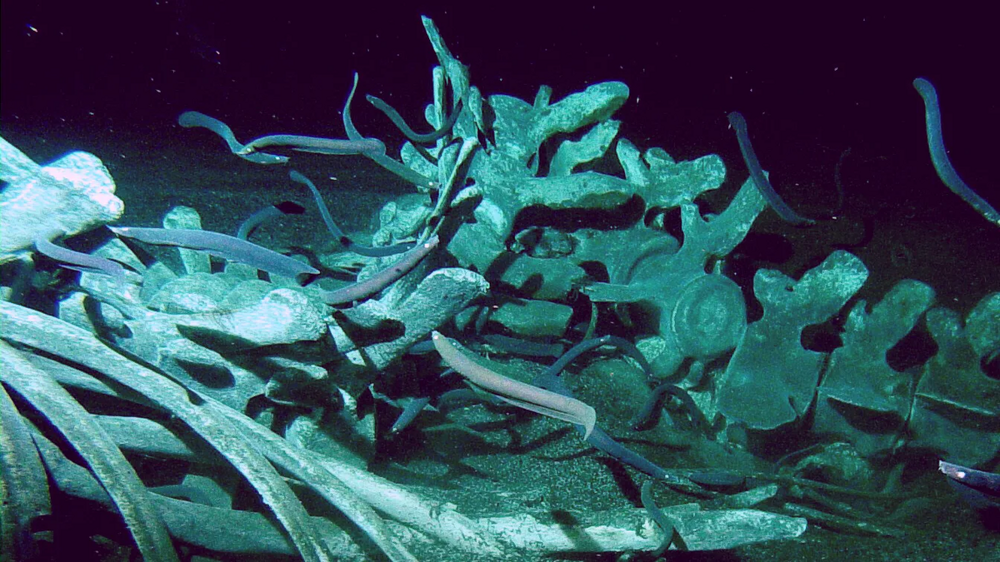 And even when every last molecule of organic matter is eaten and carried away from the bones, the whale carcass will still be a hotspot of biodiversity in the middle of the desert floor. Thoroughly cleaned bones are a great place for sponges and corals to attach! The whale turns into a small coral reef, a deep-sea oasis. This is how one death can give birth to thousands of lives!