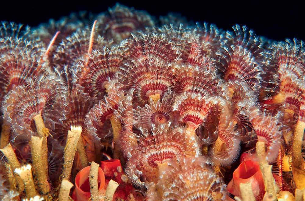 The feast is also attended by sea spiders - creepy lovers of carrion and filter feeders.