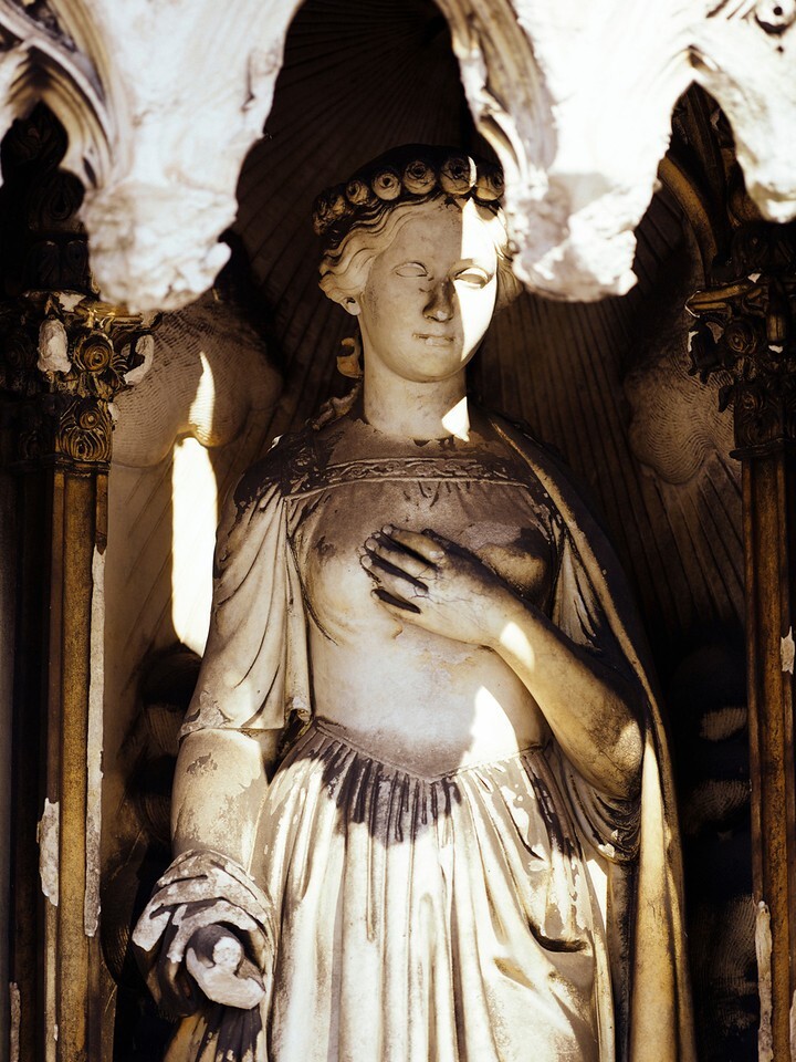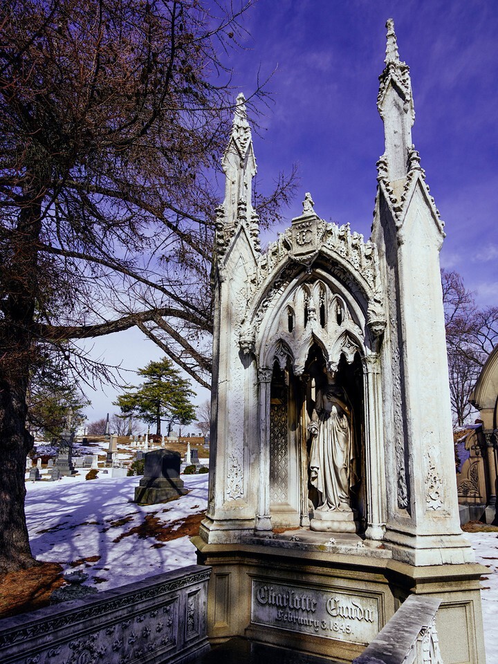 There are many unusual tombstones, crypts and monuments on it. Among the latter, one of the most intricate and tragic is the monument to Charlotte Canda, who died in a carriage accident at the age of 17.