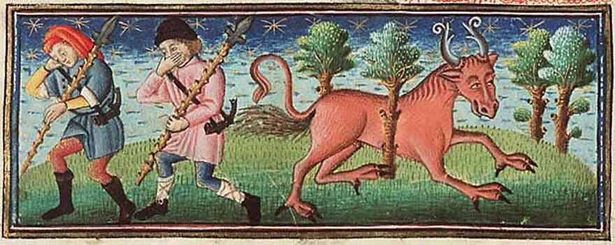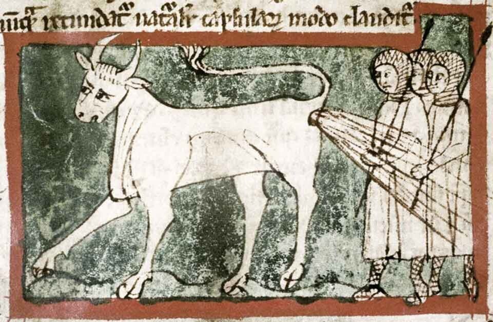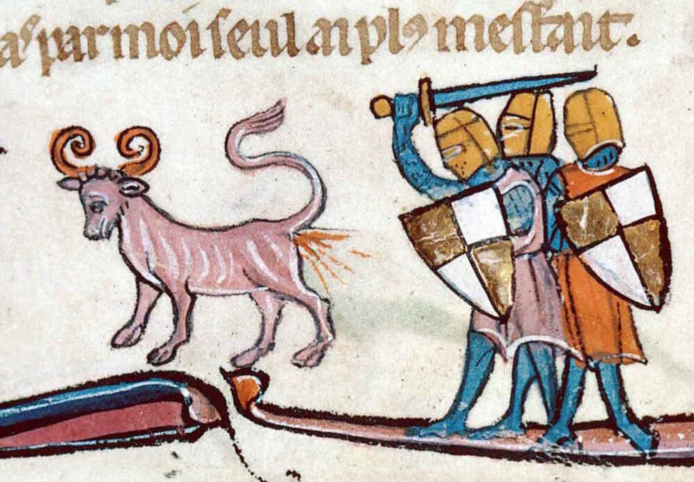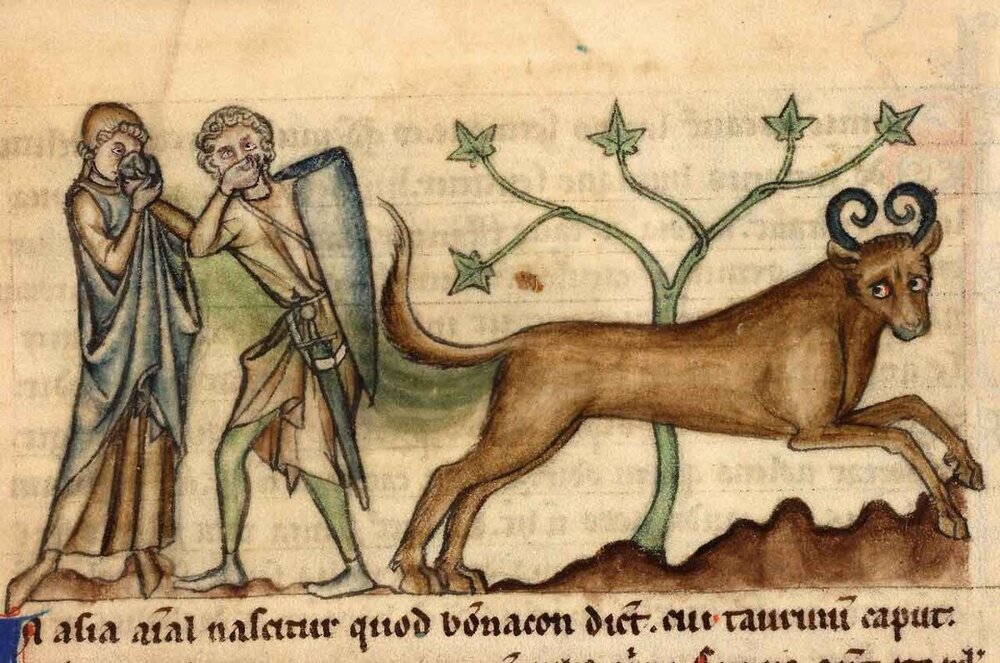 Here is what a medieval author reports about him: “There are several different types of bulls, one of which is found in Asia and is called bonacon. When hunted by man or another animal, it empties the contents of its stomach from its vile side, which is so foul that it burns and destroys everything it touches.” (Brunetto Latini, “Book of Treasures”. XIII century)