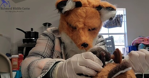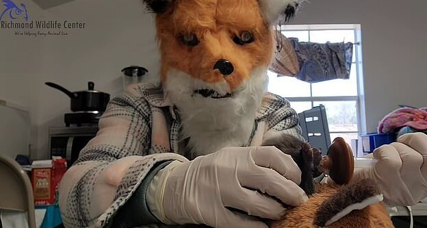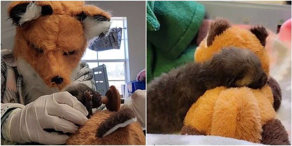An employee at a wildlife center in Virginia, USA, came up with a cute and funny way to feed one rescued fox cub. The baby was less than a day old when he was found on the street - he was noticed by a man walking his dog. Since this is a wild fox cub, the employee decided to do everything to ensure that the baby does not get used to people. She now wears a fox mask when feeding him.