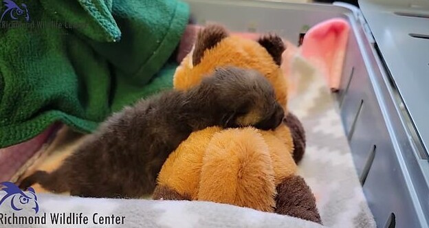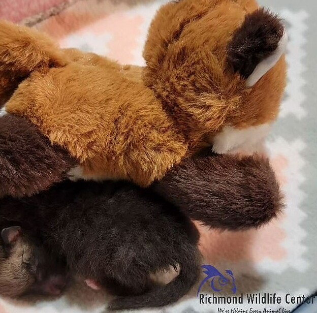 Staff take turns feeding the baby fox milk every two to four hours while wearing gloves and a fox mask. They even try not to make sounds or talk so that the cub does not get used to “human” sounds, because when it grows up and recovers, it will be released back into the wild. In addition, the baby always has a little plush fox in his crib.