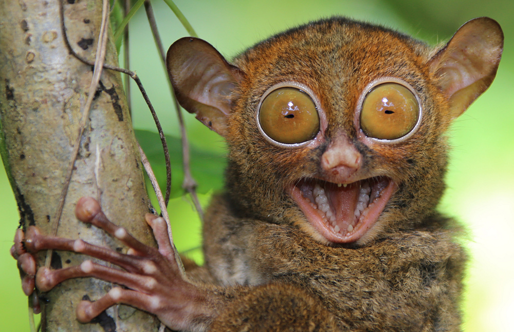 This is because, in relation to body size, its gLaza is 13% of the entire animal! If humans had such eyepieces, our eyeballs would become the size of real apples. And all because the tarsier is a nocturnal primate. His eyes are tuned to navigate the pitch black jungle.