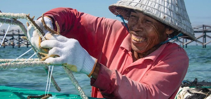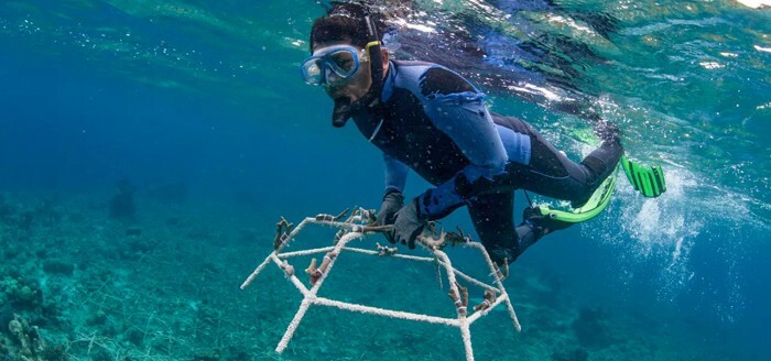 The Mars Coral Reef Restoration Program in South Sulawesi, Indonesia, recently unveiled its ambitious project, Reef Stars. This is a program to restore reefs that are being destroyed or are under threat. The principle is this: experts fasten steel structures in the form of a semicircular cage and install them on damaged corals. This way the coral is reliably protected from external influences and is restored over time.