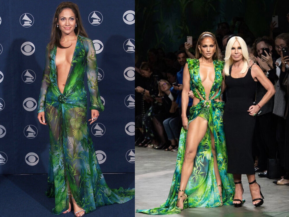 In 2019, at the fashion show of the Versace spring-summer collection, J. Lo again tried on this dress model.