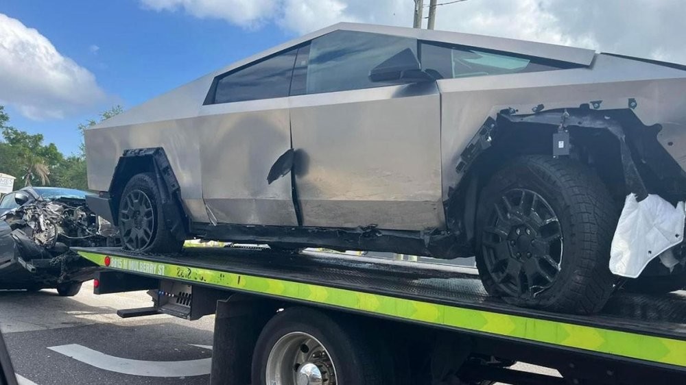 Another accident involving a Tesla Cybertruck. This time the car held up perfectly (3 photos)