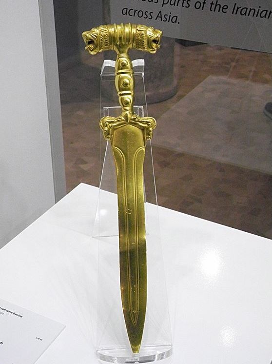 This exquisite golden sword was made during the Achaemenid era. It was one of the greatest and longest lasting empires, ruling from 550 to 330 BC and covering large parts of the Middle East.
