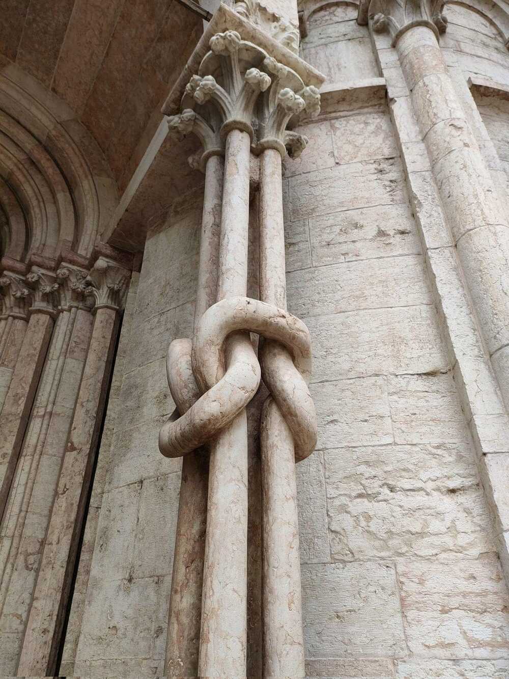 Four interwoven marble columns located in the Cathedral of Trento in Italy, 13th century AD