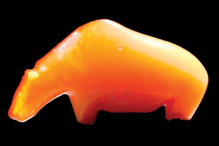 A beautiful Mesolithic amber figurine of a bear, which was made approximately 12500-3900 BC
