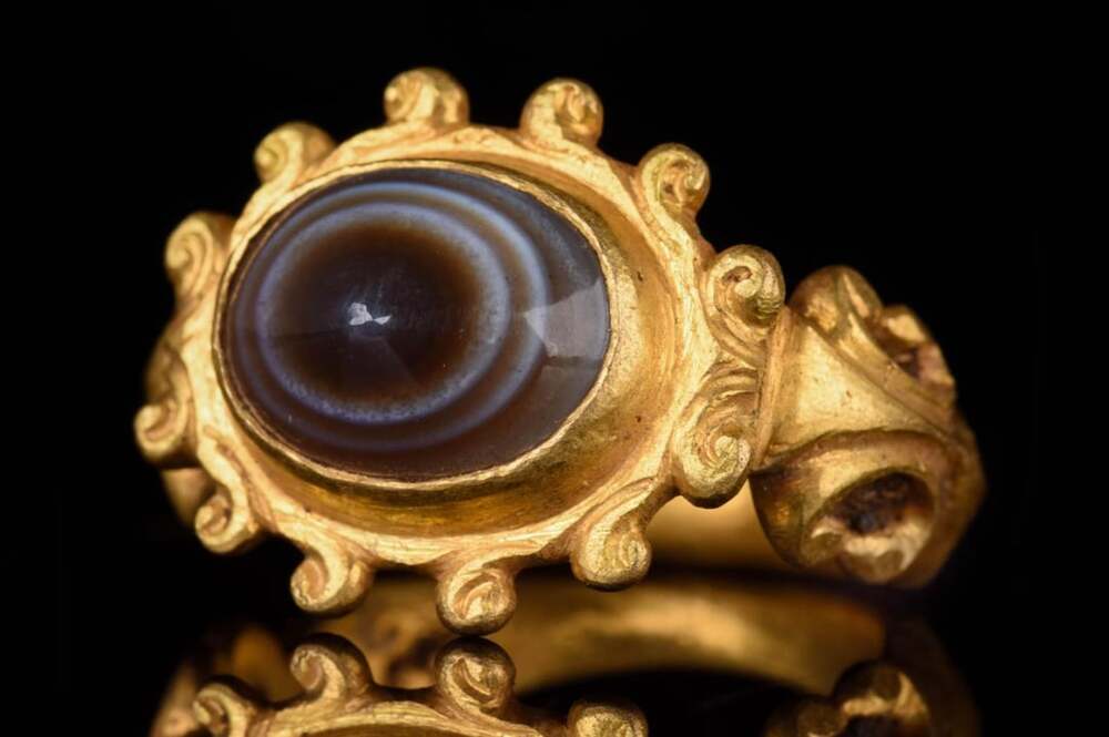 Unusual agate in a gold ring, Rome, 1st-2nd century AD
