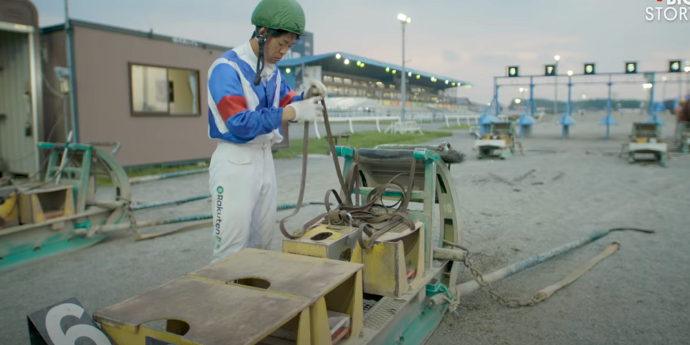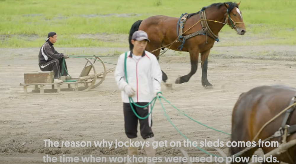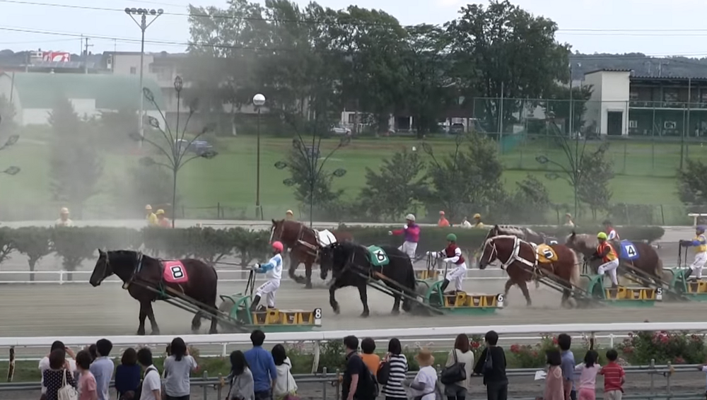 Powerful banei horses pull sleds that are loaded with weights ranging from 450 kilograms to a ton, depending on the category of the race. Moreover, this is not a flat road, but a sandy track with different ramps to simulate complex realistic terrain.
