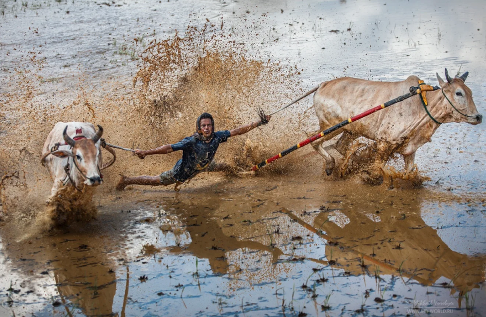 This race reminds me of the Indonesian mud bull and plow races. Farmers compete in the skill of their bulls and their talent for balancing while plowing, but it looks very spectacular. In general, I liked it a hundred times more than ordinary races, where the horse is driven for no clear reason.
