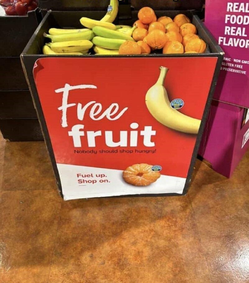 10. Free fruit at the supermarket. "No one should walk through the store hungry!"