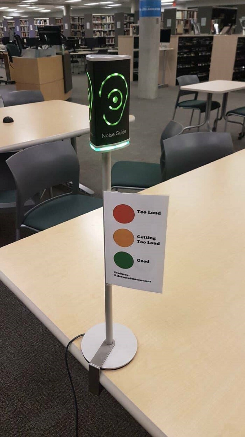 6. "Noise level" in the library. Lights up red if the room is too noisy
