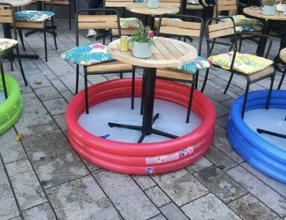 9. The cafe placed inflatable pools under the tables so guests could cool off on hot days.