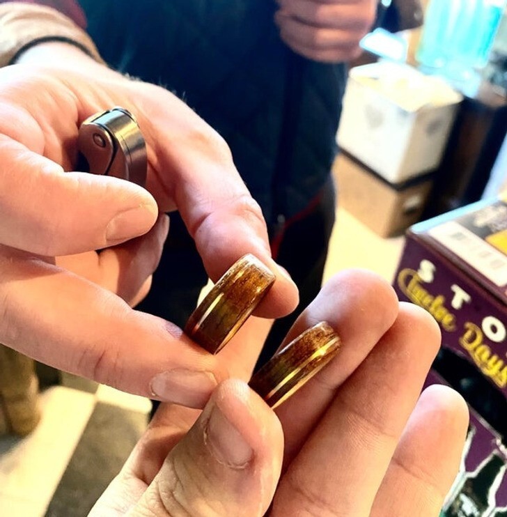 2. “My wedding ring and this random stranger’s ring are made from the deck of the same ship.”