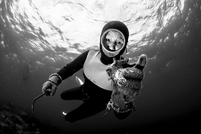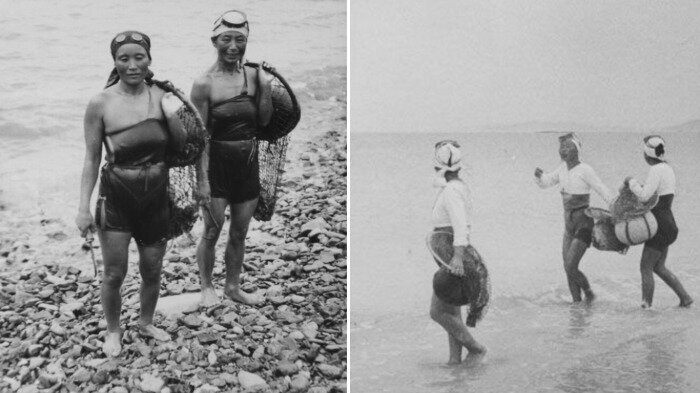 Several divers, and they always work together, leave the shore in a boat and stop at a certain place in the sea. Then the women take knives in their hands, dive for the prey, climb to the top and leave the spoils in nets located along the edges of the boat.