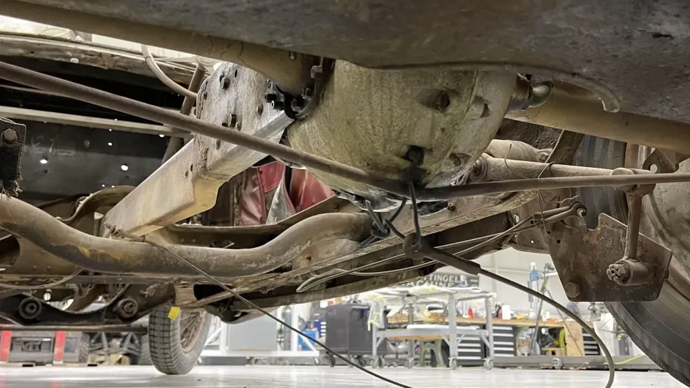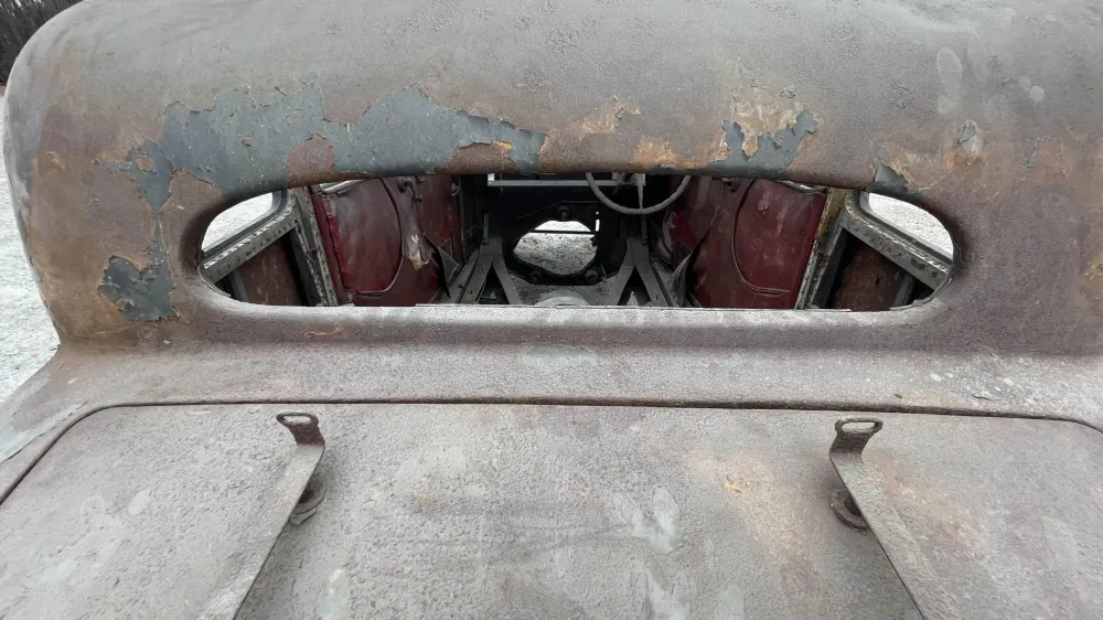 The body, with peeling black paint and numerous traces of rust, sits on 18-inch spoked wheels, but cannot move independently. The power unit and almost all interior elements have been removed, the brakes are not connected. Some details are completely lost.