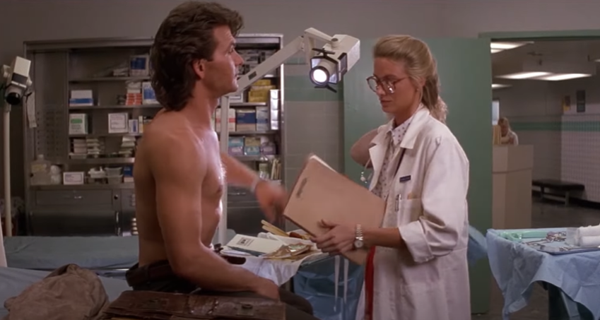 8. During the filming of the film, Patrick Swayze had two broken ribs. It happened completely by accident. Actor Marshall Teague, who played Jimmy, mistook the log for a prop and hit Swayze in the chest with all his might.