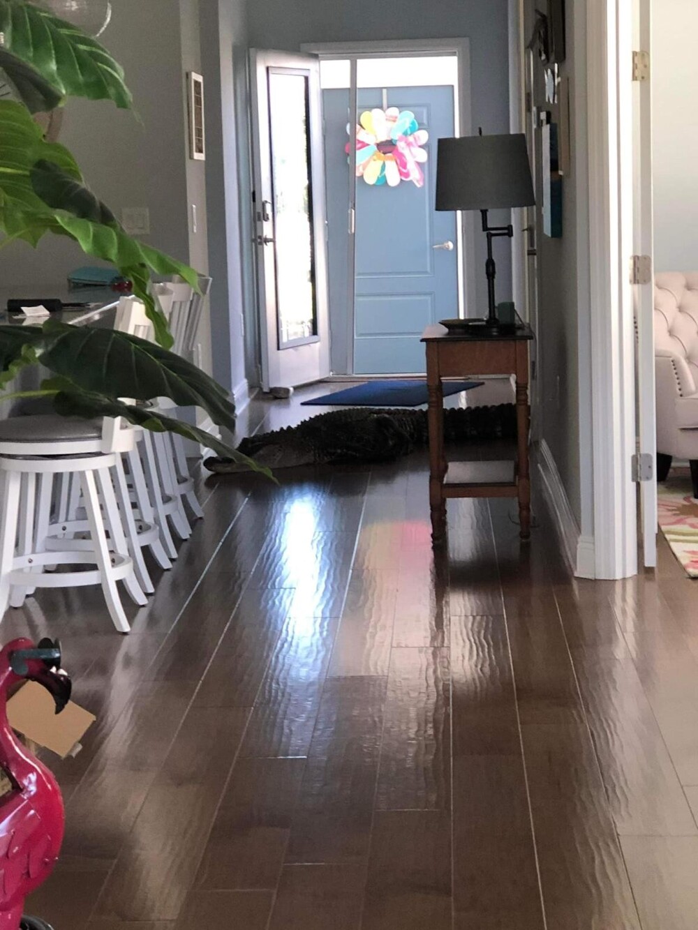 “I thought someone was at the wrong door. This happens a lot here. When I got up and went to the door, the alligator was already inside,” Mary explained.